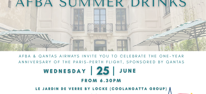 AFBA Summer Drinks and Qantas One-Year Paris-Perth Anniversary – 25 June