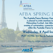 The Australia France Business Association (AFBA), in partnership with corporate member ANZ, is pleased to invite members and friends to its annual Spring Networking Cocktail.