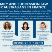 The Australia France Business Association is delighted to invite AFBA members to a panel discussion, in partnership with Australian law firm MILLS OAKLEY, exploring key aspects of family and succession law for Australians in France.