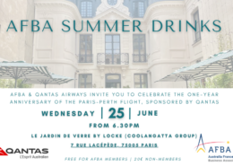 AFBA Summer Drinks and Qantas One-Year Paris-Perth Anniversary – 25 June