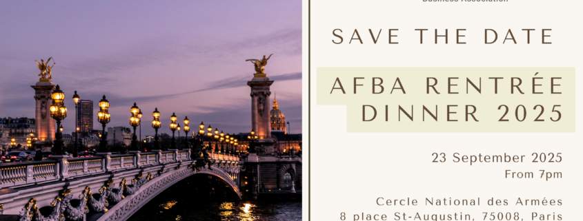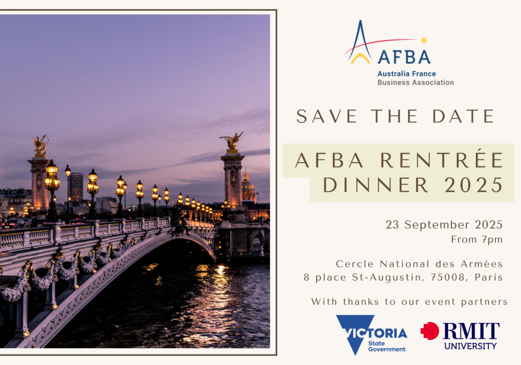 The President and Board of the Australia France Business Association are delighted to invite members and friends to our annual AFBA Rentrée Dinner 2025, one of the most anticipated events on the AFBA calendar.